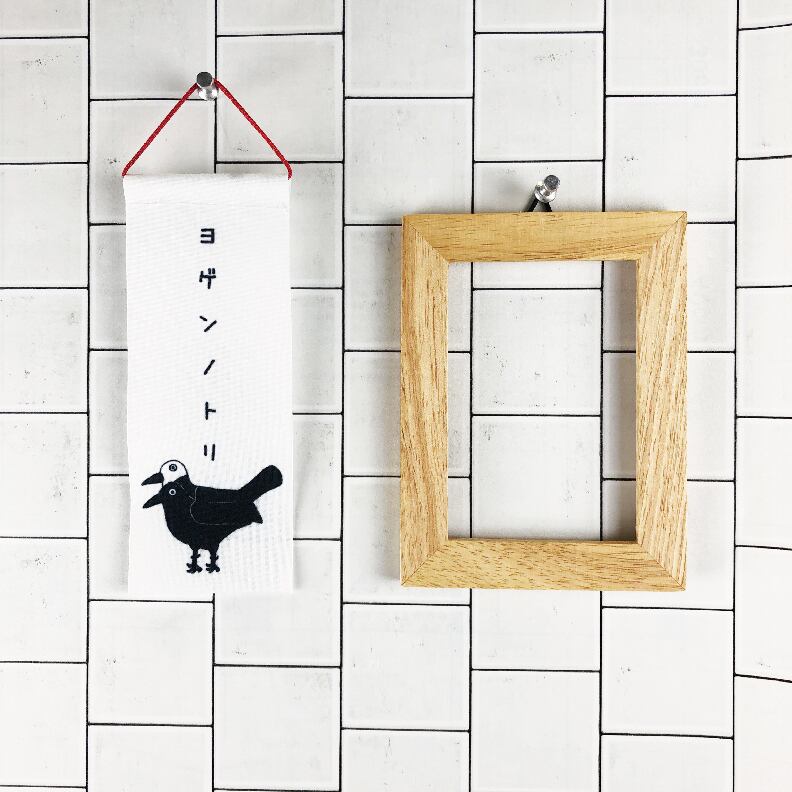 アクセントとして赤色の人絹江戸内紐で吊り下げれるようになっています。