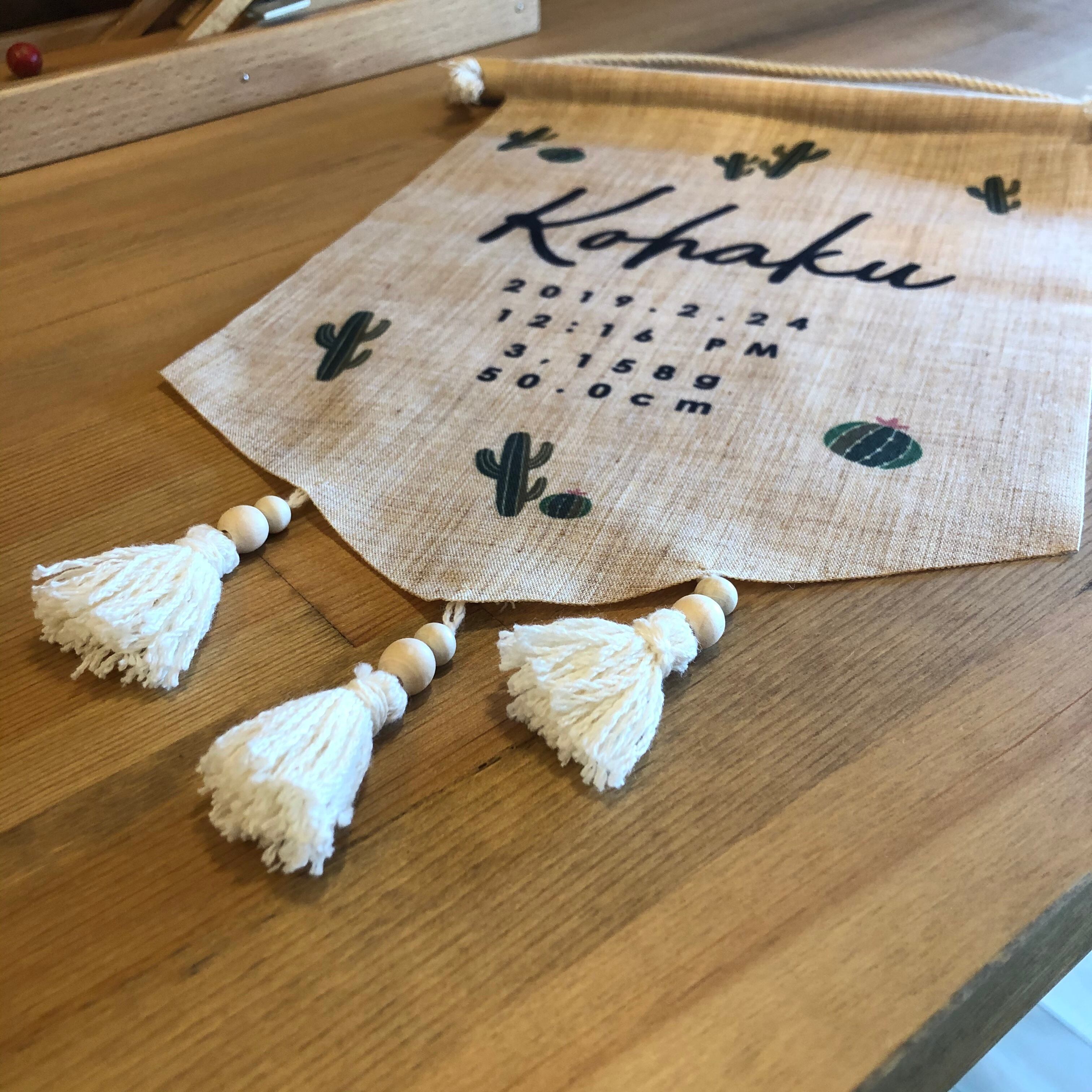 【プレミアム ボーンタペストリー サボテン柄】送料無料 選べるフォント 選べる高級生地 選べるタッセル 命名書タペストリー 出産祝い 子供部屋 ニューボーンタペストリー 赤ちゃんプレゼント フラッグ デザインデータ確認