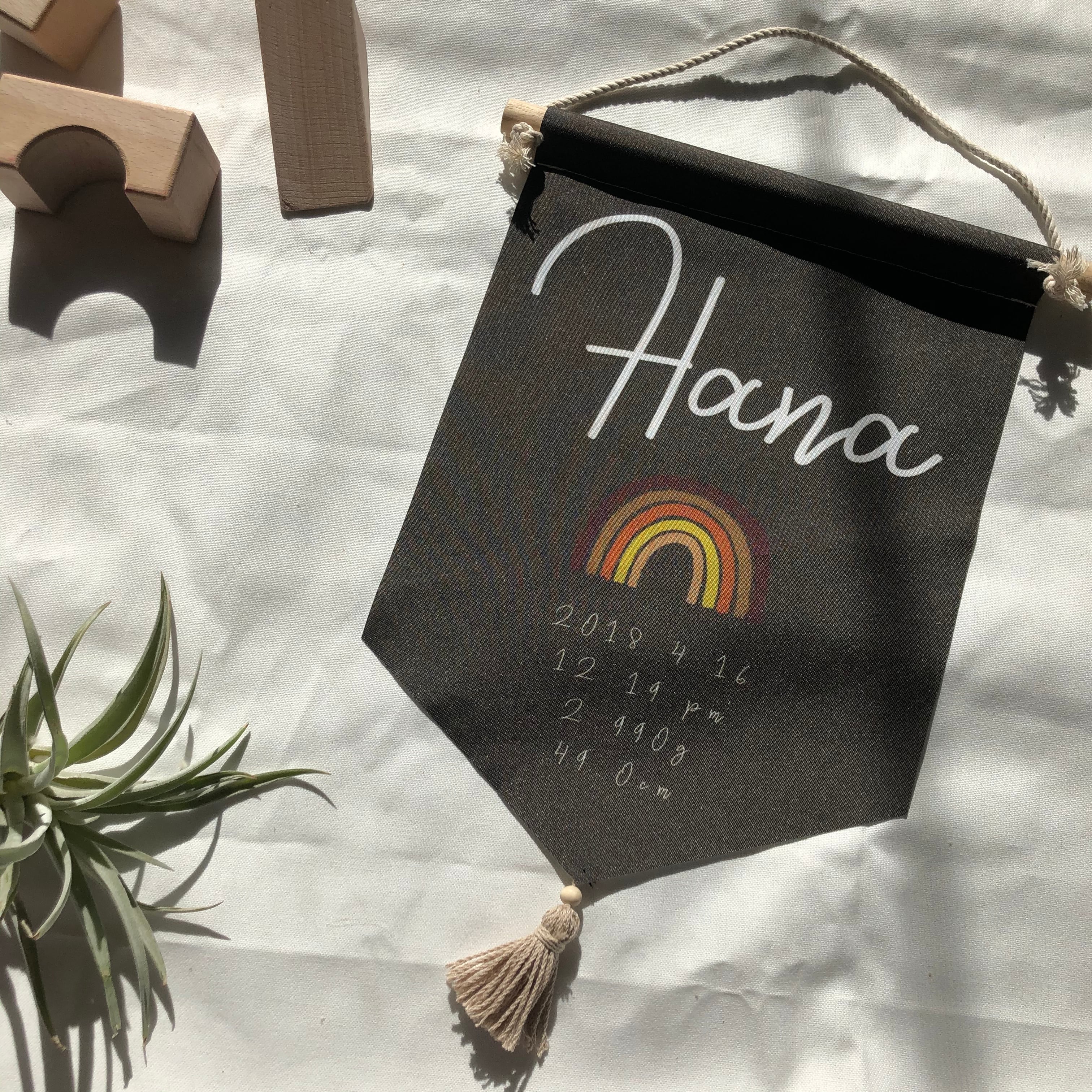 【カラー ボーンタペストリー レインボー柄】送料無料 選べるカラー 選べるタッセル 命名書タペストリー 子供部屋 出産祝い ニューボーンタペストリー 赤ちゃんプレゼント 誕生日プレゼント デザインデータ確認