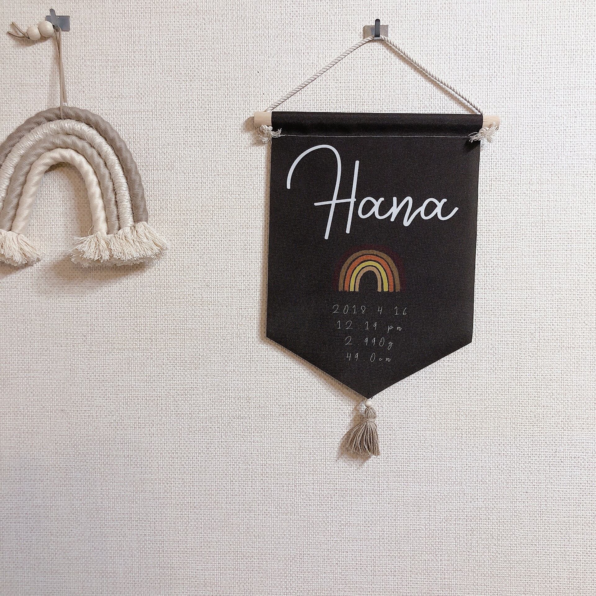 商品説明:お子さんのお名前、生年月日、出生時刻、身長、体重を記したボーンタペストリーです!!