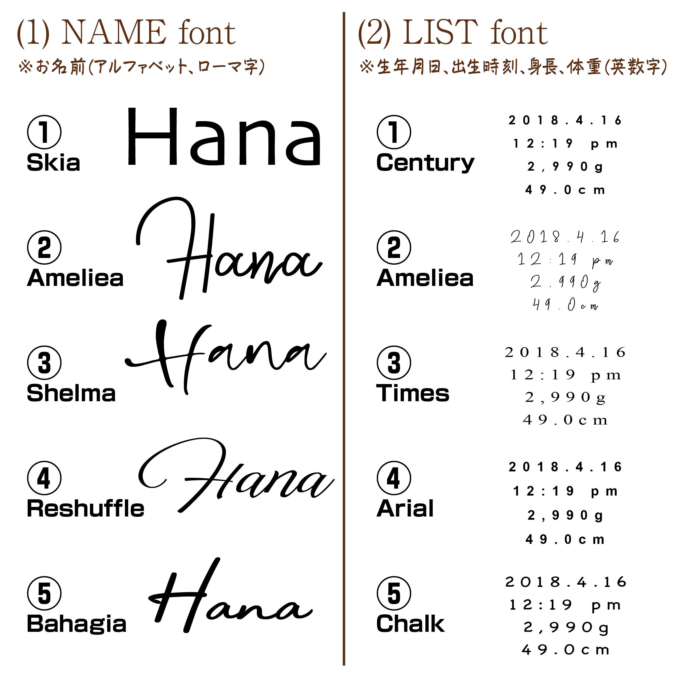 写真9枚目より、お名前とボーンデータの各フォントをご選択ください。