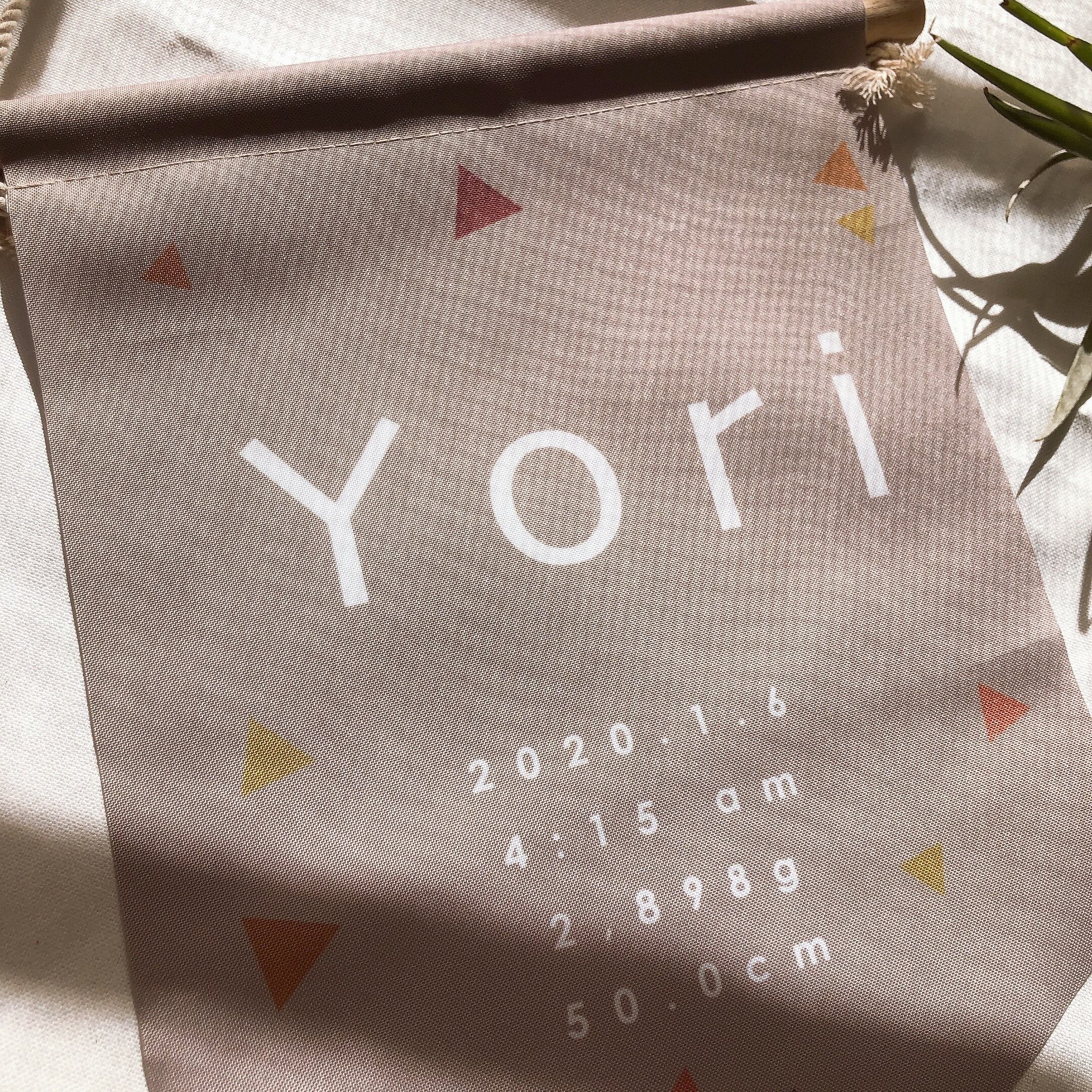 お子さんのお名前、生年月日、出生時刻、身長、体重を記したボーンタペストリーです!