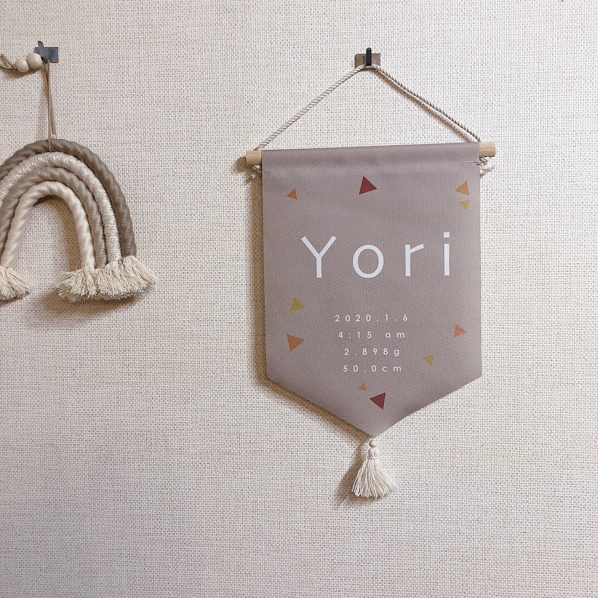 【カラー ボーンタペストリー 三角柄】 送料無料 選べるタッセル カラー印刷 フラッグ 命名書タペストリー 子供部屋 出産祝い ニューボーンタペストリー 赤ちゃんプレゼント 誕生日プレゼント デザインデータ確認